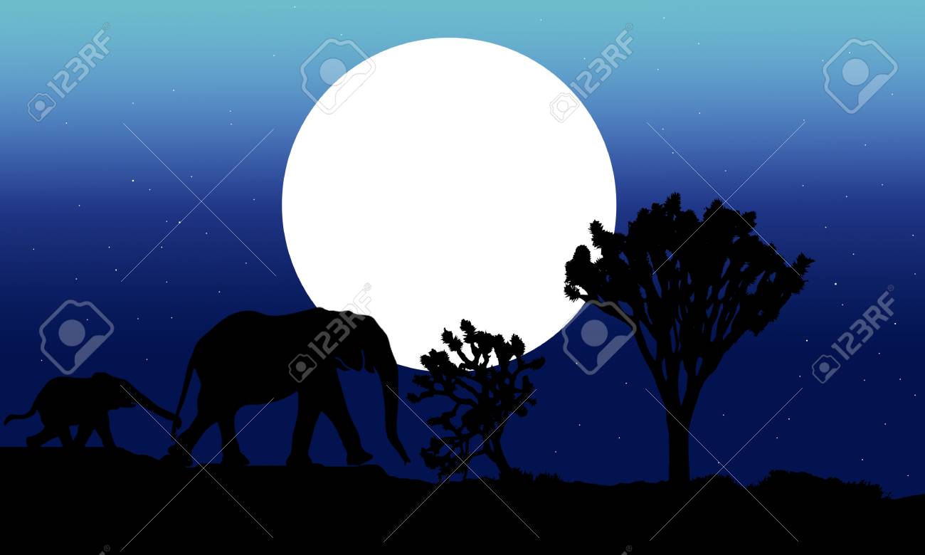 Mother And Baby Elephant Walking Towards Jungle In Night Stock Photo Picture And Royalty Free Image Image